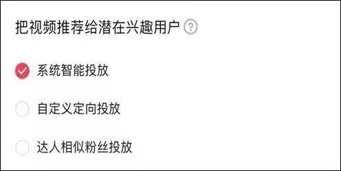 模式1:系統(tǒng)智能投放,系統(tǒng)會智能選擇可能對該視頻感興趣的用戶或潛在粉絲,對其進行視頻展現(xiàn)。